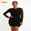 Mini-Robe Noire ABIYE PLUS à Manches Longues Motif Géométrique Transparence